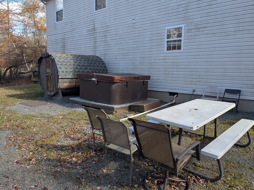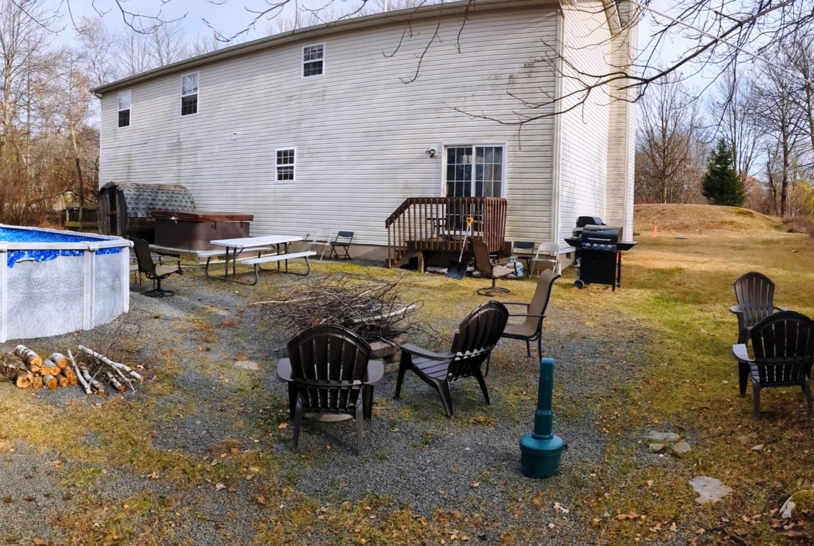 SPECTACULAR LAKEFRONT – Great for large family or as an investment. This 5 bedrooms, 2.5 baths home is currently used as a Short Term Rental. The home has direct access to the lake and public sand beach with playground! Hot tub, above ground pool and sauna great for big party with children. The flat back yard leads directly to the lake and has a cozy fire pit to sit around on those cool nights. As well as Huge Living room, wood-burning fireplace, 2 large dining areas, and game area excellent for family evenings. Just minutes away from community swimming pools, tennis courts and other sport fields. Property is close to the major Pocono attractions – Camelback Ski and Waterpark, Jack Frost, Kalahari, Mount Airy Casino and the 100 outlets in Tannersville.